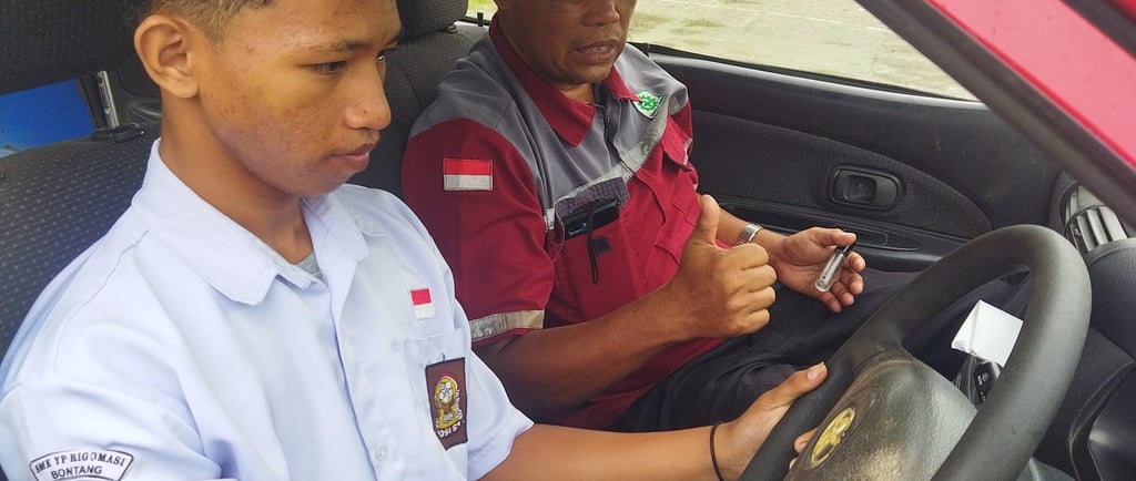 Belajar Mengemudi Mobil di SMK Rigomasi